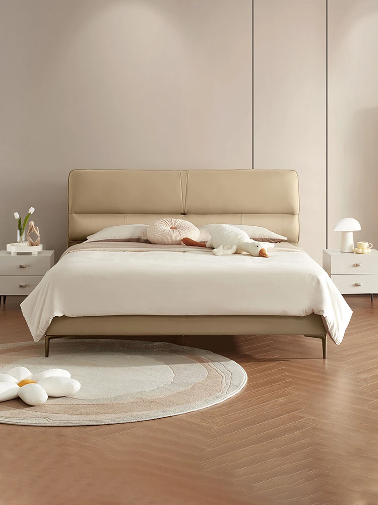 顾家 家具 モダン シンプル レザー ベッド - 小さな象の耳デザイン、快適な睡眠を妨げないダブルベッド、主寝室にぴったりな高級感 8161