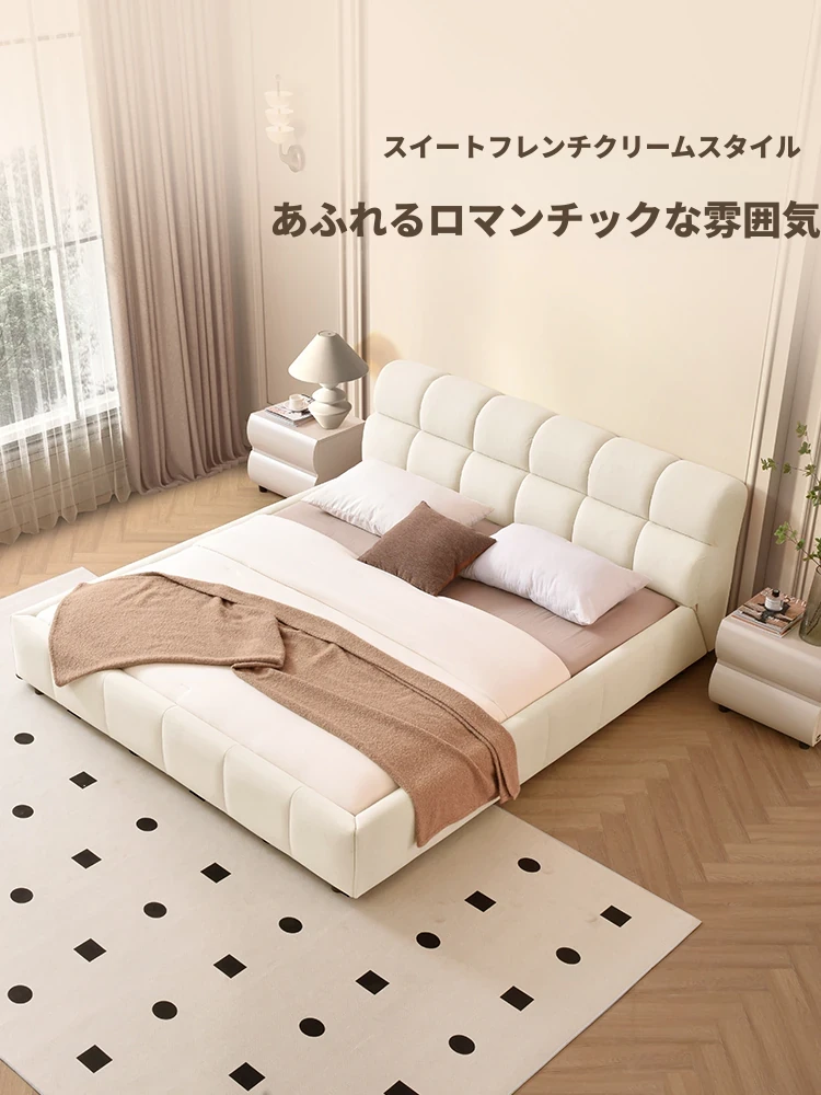 【顾家家居】2025フレンチクリーム風雲朵シュークリーム婚ベッド—リラックスできるダブルベッド、高級感あふれる泡泡ベッド【主寝室に最適】
