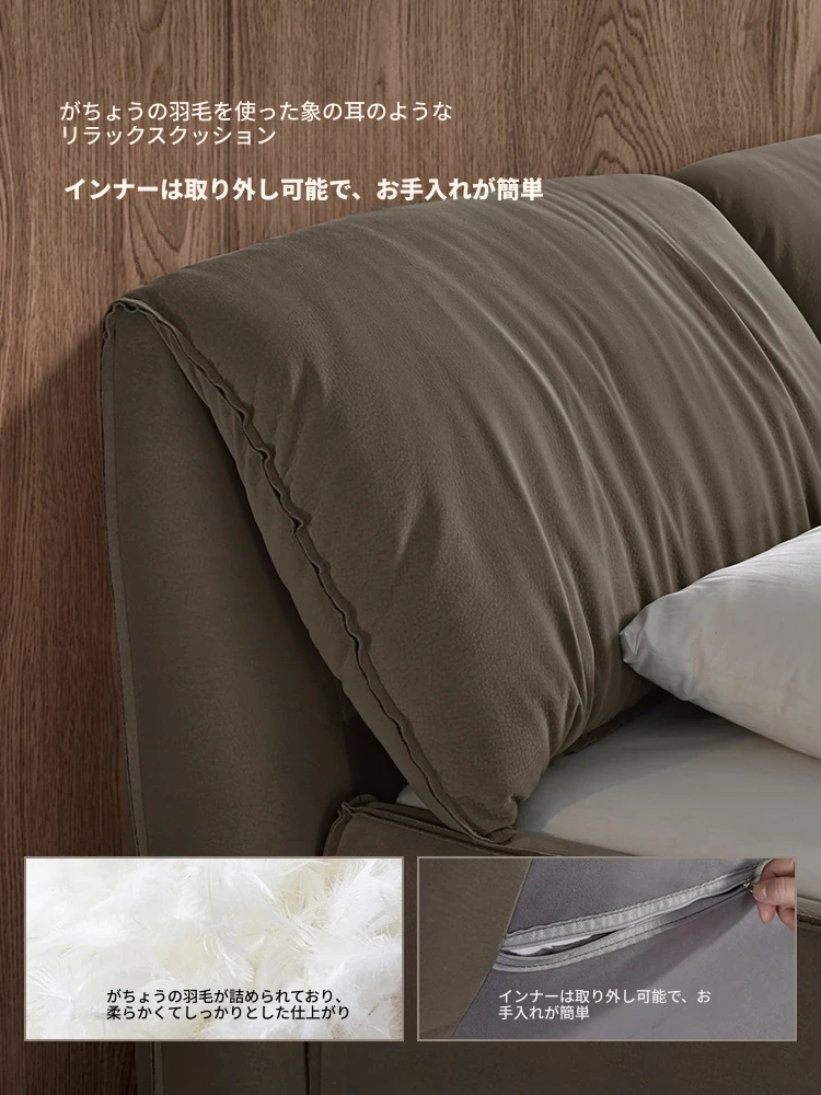 顾家ホーム イタリアンスタイル ラグジュアリー エレファントイヤー デザイン グースフェザー クッション ベッドサイド ダブルファブリックベッド9132 - 取り外して洗えるマットベルベット 採用!