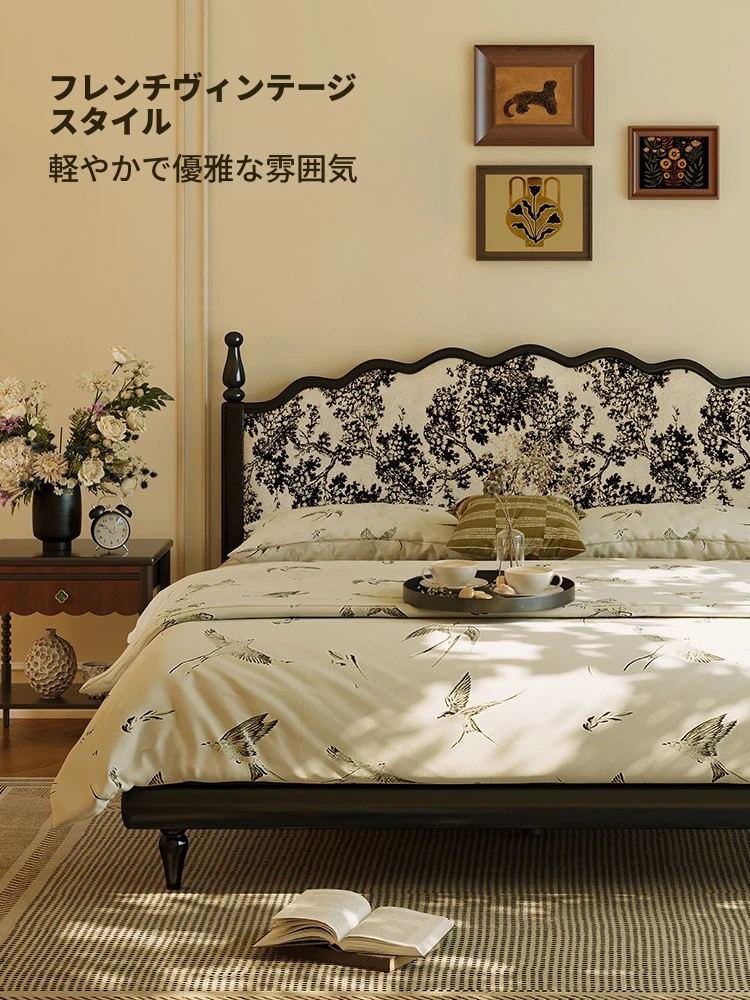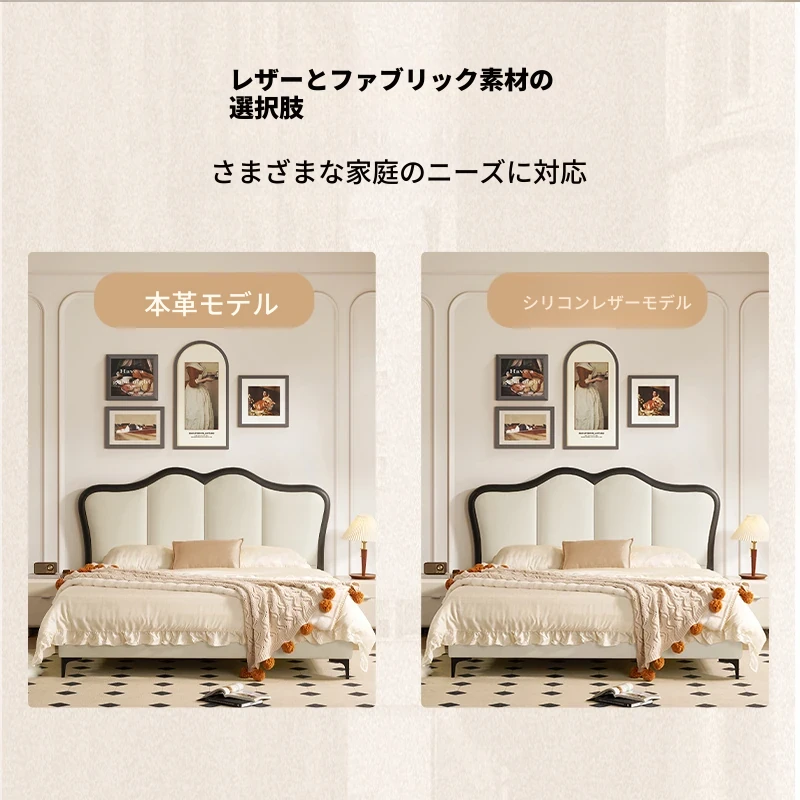顾家スタイリッシュモダン天然木&本革ベッド - フランス風クリームスタイル、豪華ダブルベッド8055(主寝室に最適)