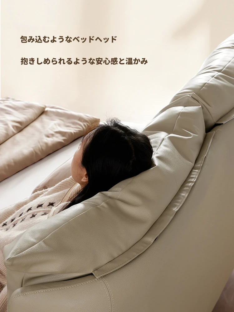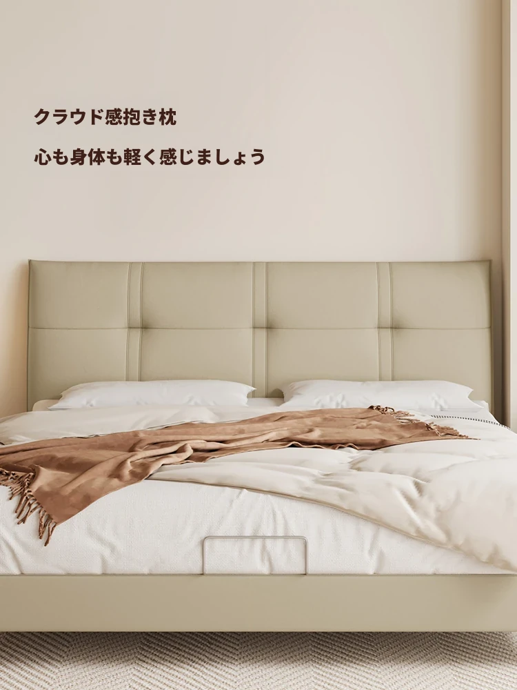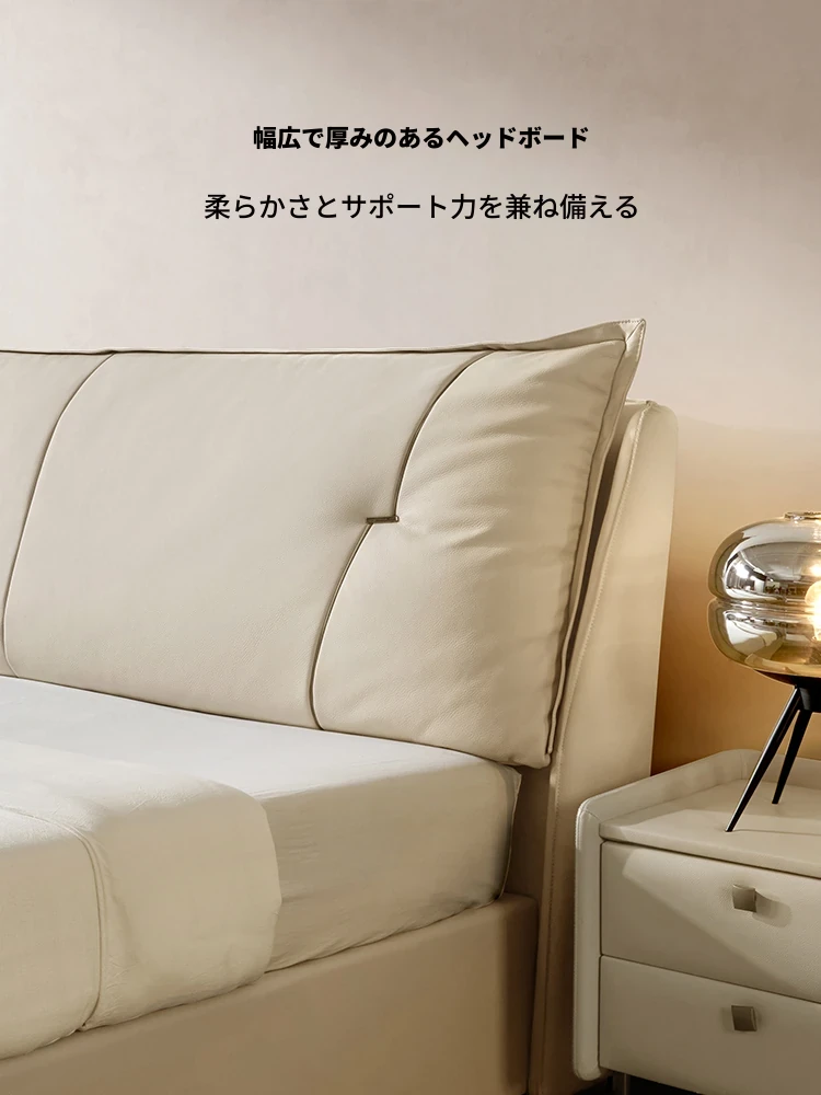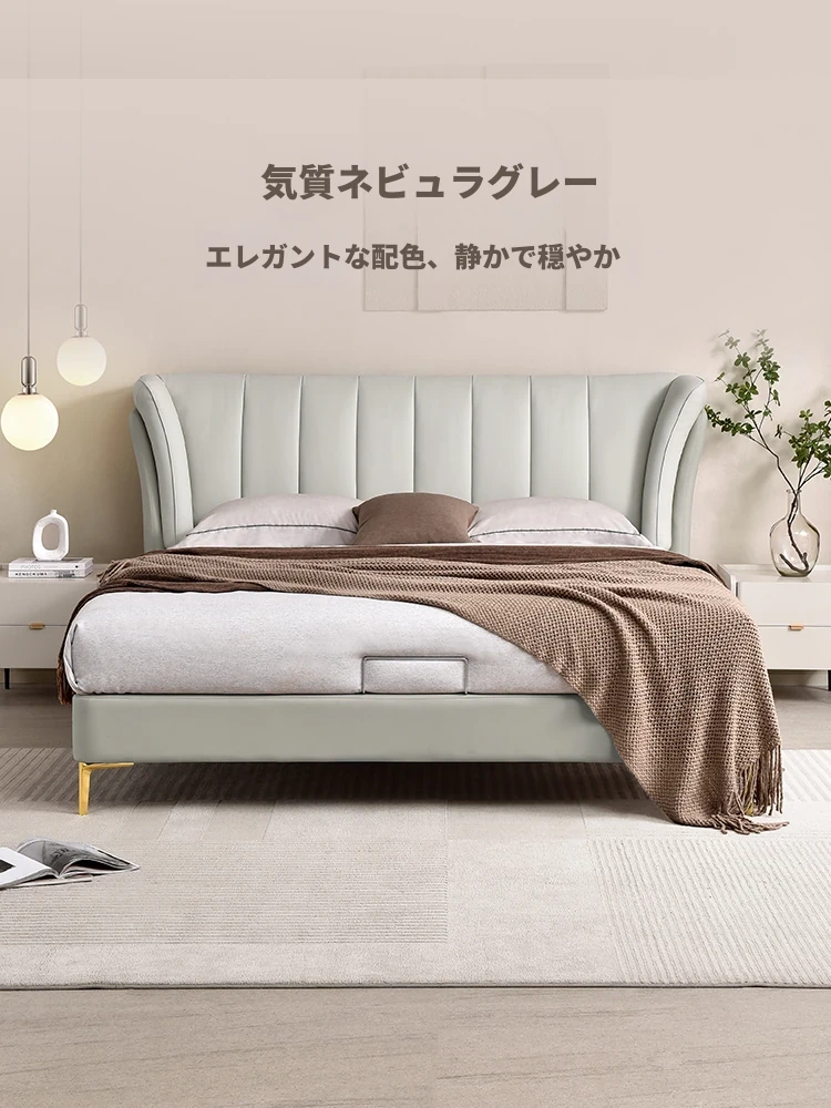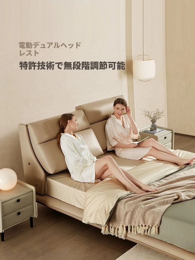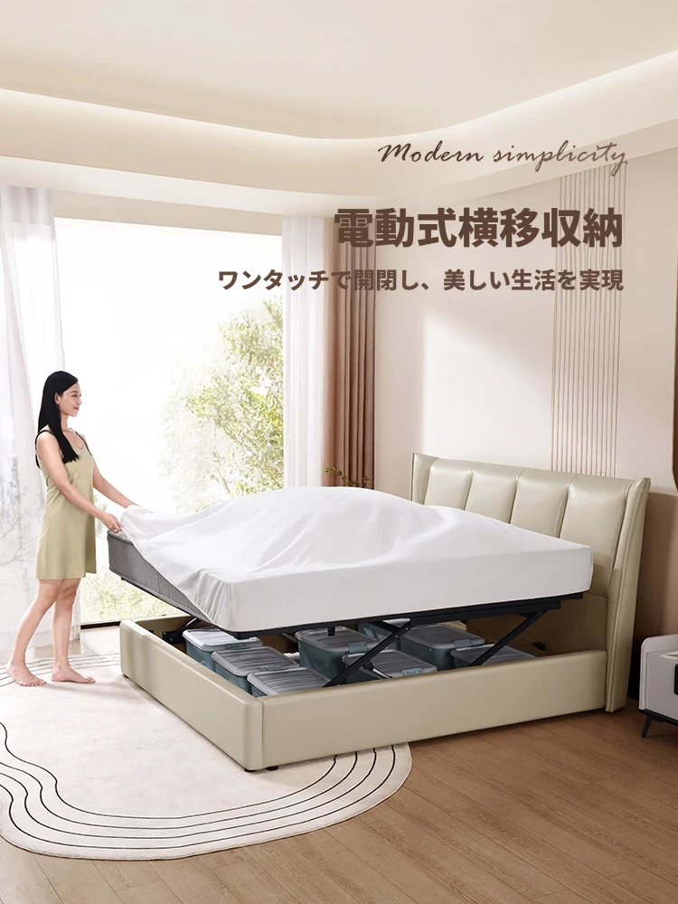 【顾家家居官方】モダンなクリームスタイル本革ソフトベッド - 電動スライド収納付き主寝室用ダブルベッド「8073B」!快適な眠りと洗練されたデザインでお部屋をグレードアップ!