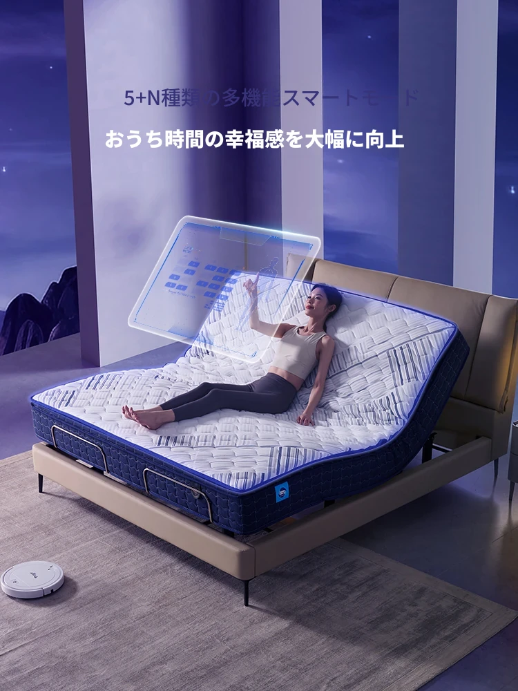 【限时优惠】顾家家居 高档本革リクライニングダブルベッド+極厚ラテックスマットレスセット!快適な眠りを届ける電動スマートベッド