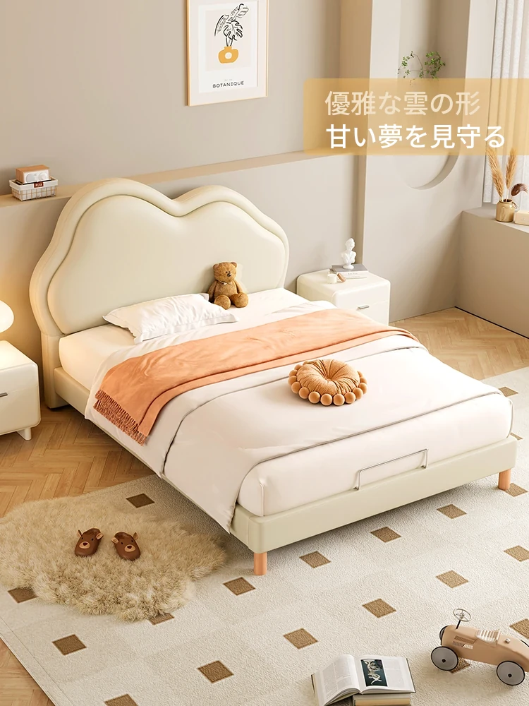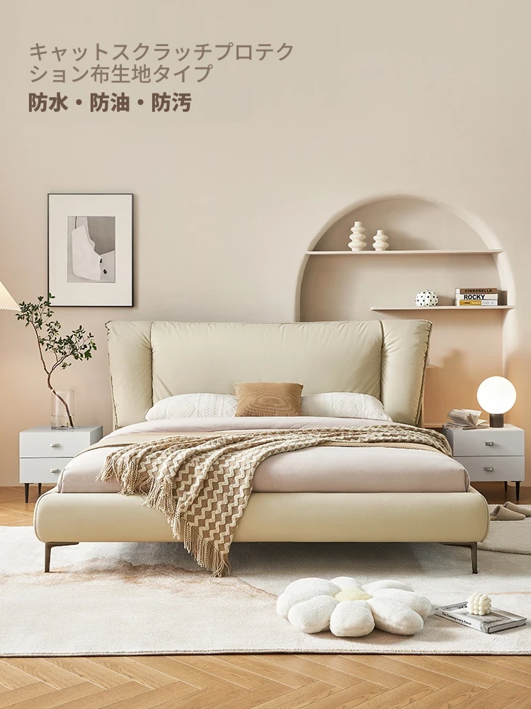 魅力の現代クリームスタイル!耐猫爪加工の生地使用、小型寝室にもぴったり合うクイックデザインベッドDS9153B