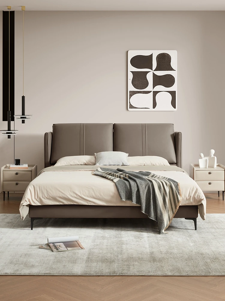 【顾家家居】モダンミニマリストイタリア風「大黒牛」浮遊デザイン本革ダブルベッド - 主寝室に最適、スタイリッシュで快適な睡眠体験を提供!8192