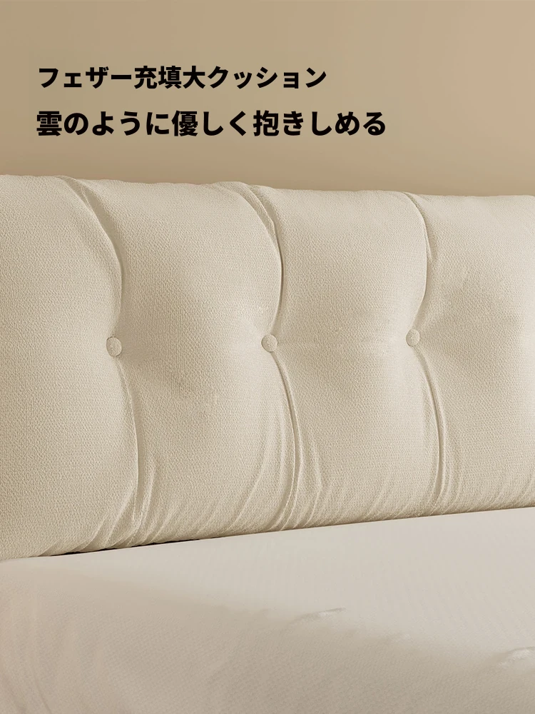 魅力アップ!クリーンで防ダニなキャットフレンドリー生地使用、ナチュラルクリームトーンの女性向けデザイナーズ ベッド DS9068