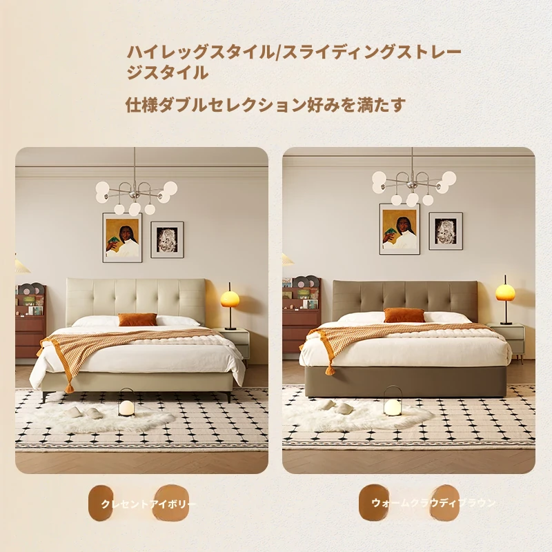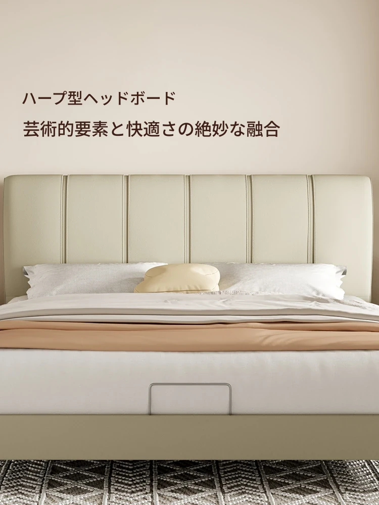 【人気急上昇中】トップ品質のGu家家具収納付きモダンミニマリズム本革ベッド!主寝室にぴったりな多機能ダブルベッド(モデル8158)で、おしゃれなクリームスタイルを演出!