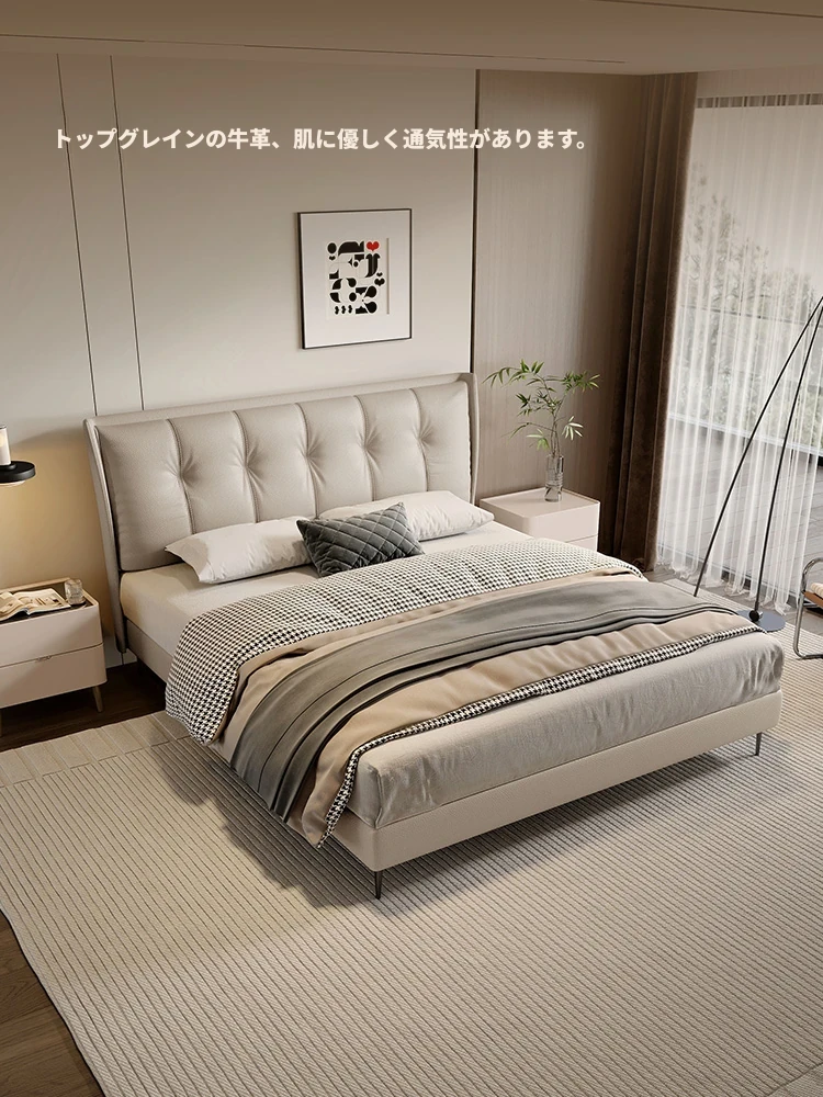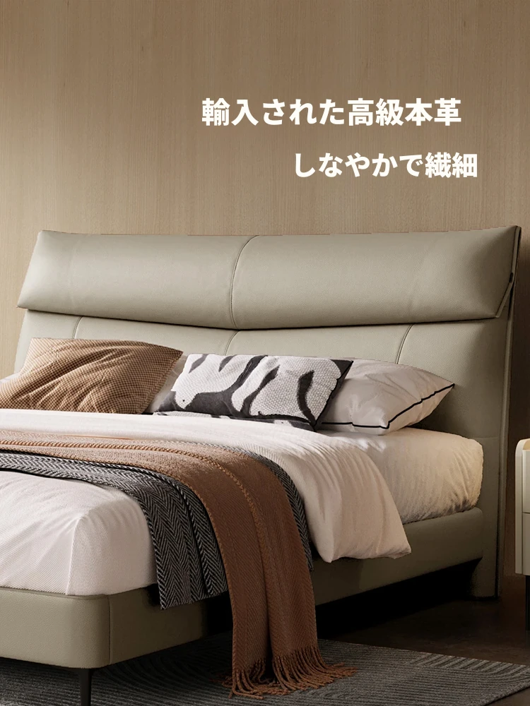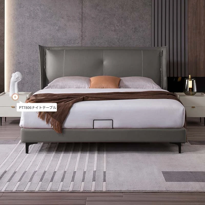 【魅力満点】Gujia 家具の現代シンプル イタリアンスタイル ラグジュアリー 大黒牛レザー ベッド 主寝室用 ダブルベッド モデル8191 - エレガントなデザインで至福の眠りをお届け!