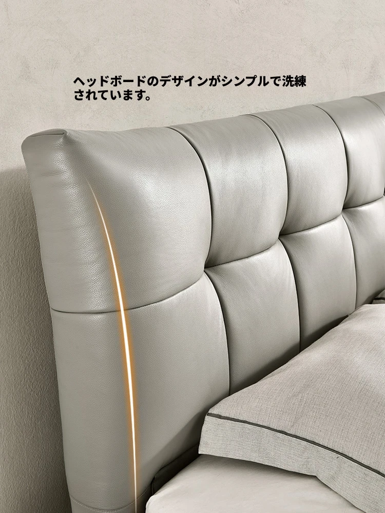 顾家ホーム 真皮ベッド - 軽やかなラグジュアリー、モダンでミニマムなデザインの主寝室用ダブルベッド「オーロラ168」