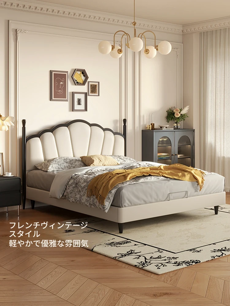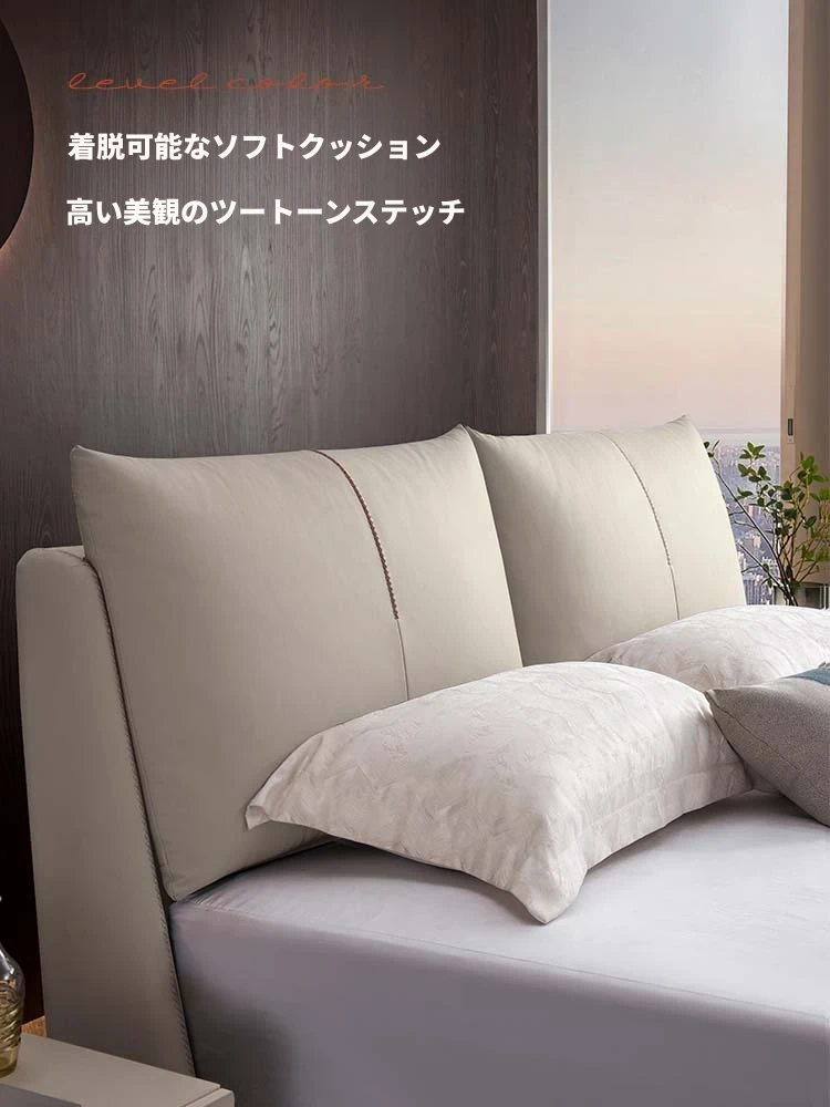 【Gujia Home】現代シンプルラグジュアリー本革ダブルベッド 主寝室収納付きソフトパッド クリーム風大ベッド DS2913 - あなたの寛ぎの空間を格上げする贅沢な選択!