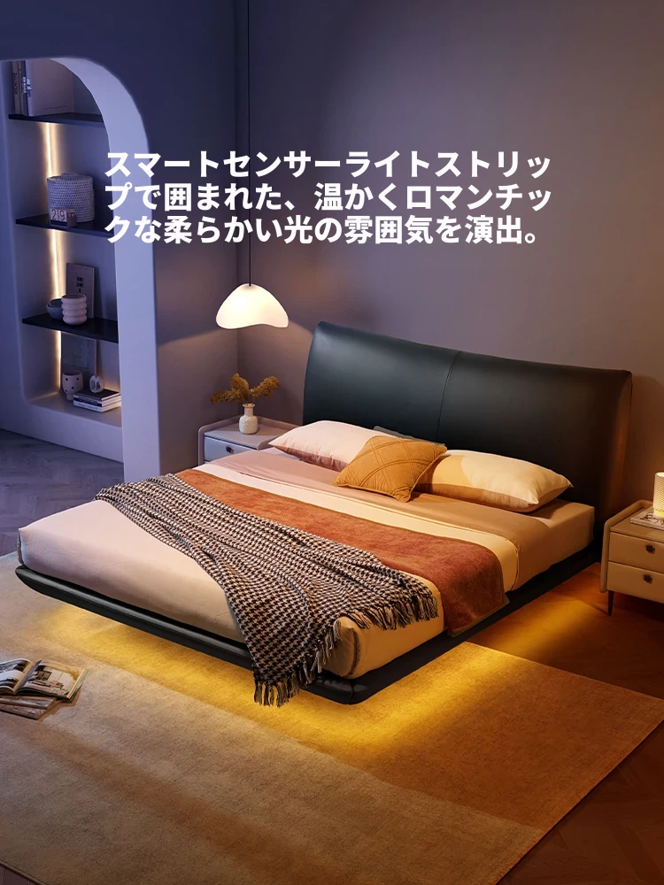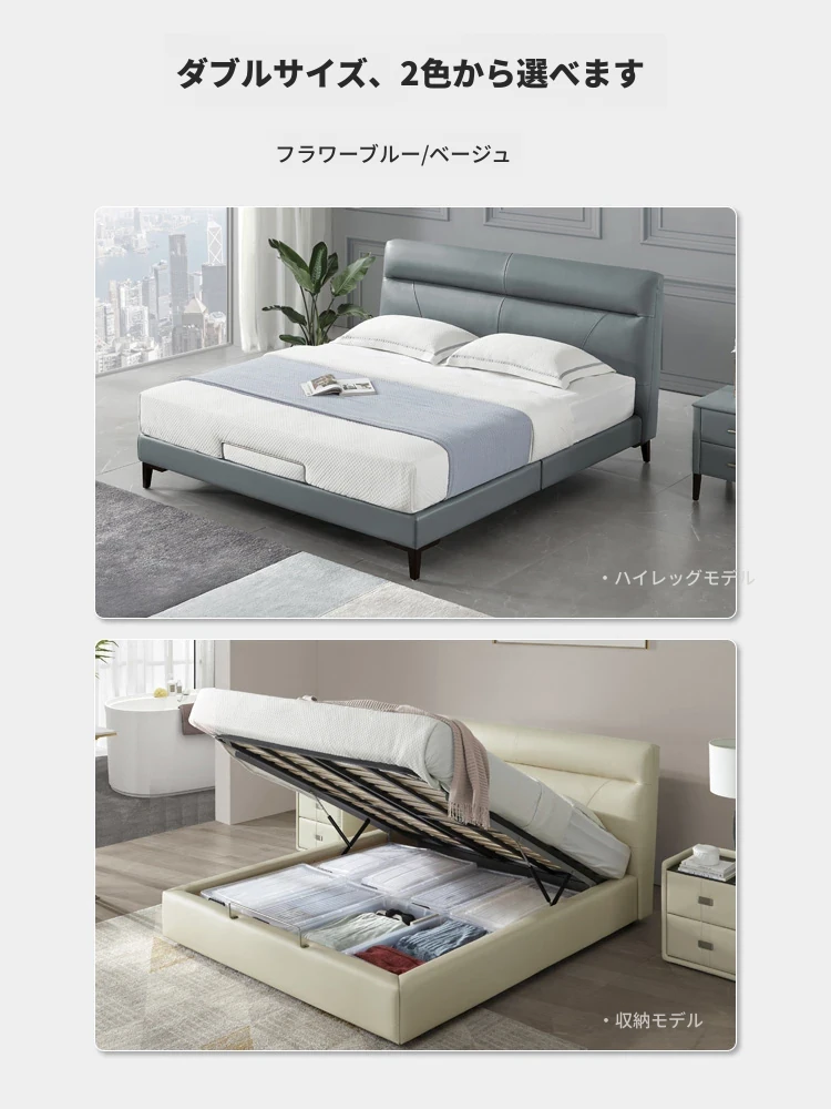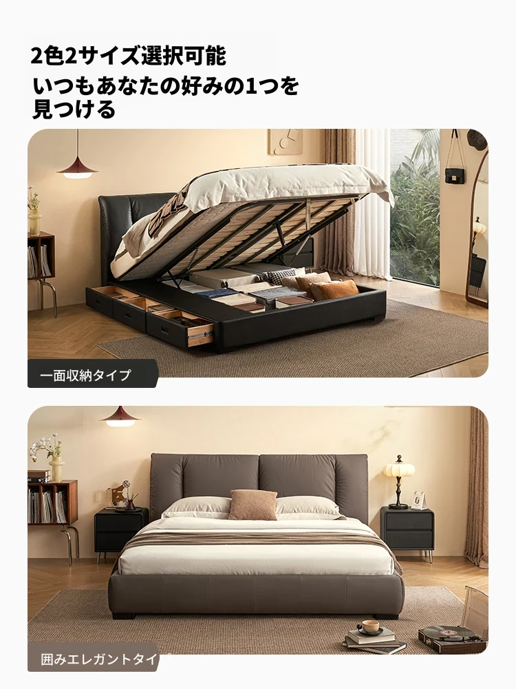 【大容量シリーズ】くつろぎ家具モダンシンプル本革収納ベッドDS8189B~高級感あふれるファブリックと実用性の完璧な調和~