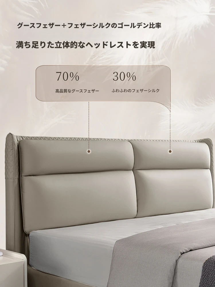 【顾家家居】モダン&シンプルデザイン、高級天然レザー使用、フェザークッション入りの静音マスターベッドルーム用本革ベッドDS8237B – 究極の快適さとスタイルをお届け!