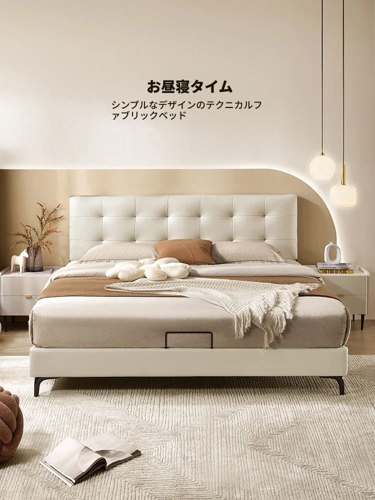 顾家ホーム モダンミニマル肌触り人工皮革布製クッション クリームカラー 主寝室用ベッド DS9107B - 快適さとスタイルを兼ね備えたデザインで理想の寝室を実現!