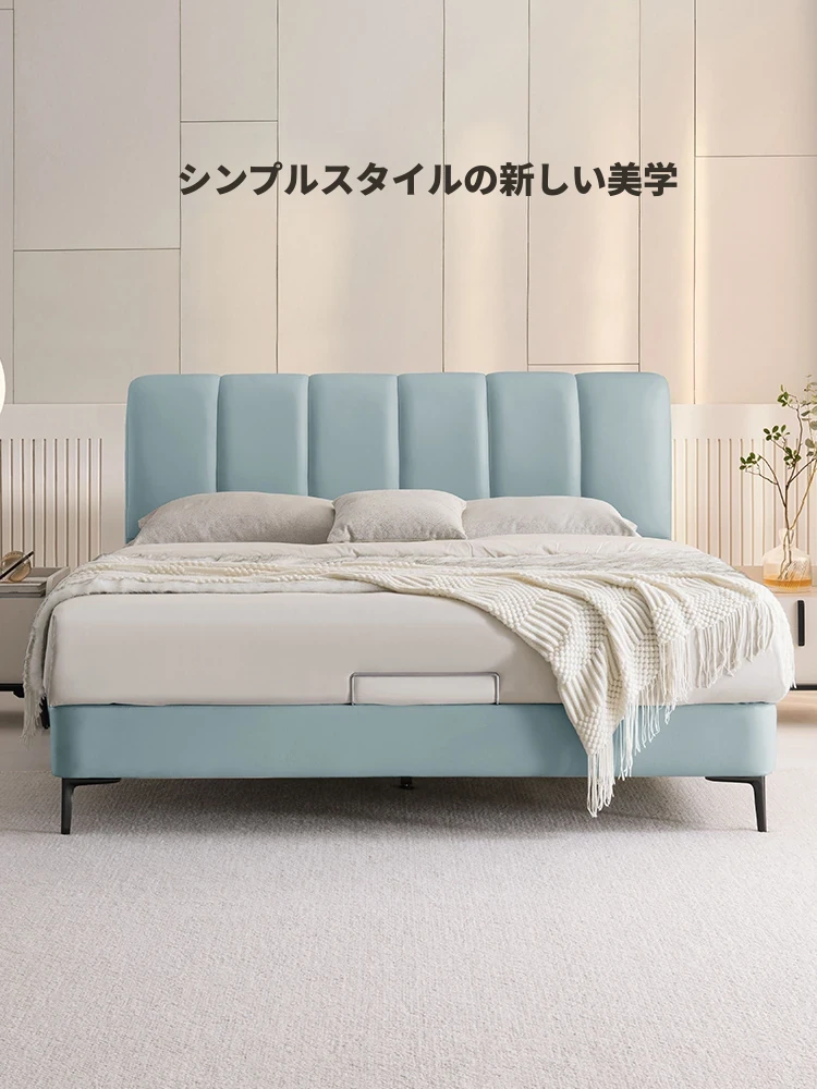 【顾家家居】モダンでシンプルなデザインの電動収納式レザーベッド1.8m 主寝室用本革ダブルベッド8068B:快適性とスタイルを兼ね備え、省スペースで機能的な主寝室の必需品!