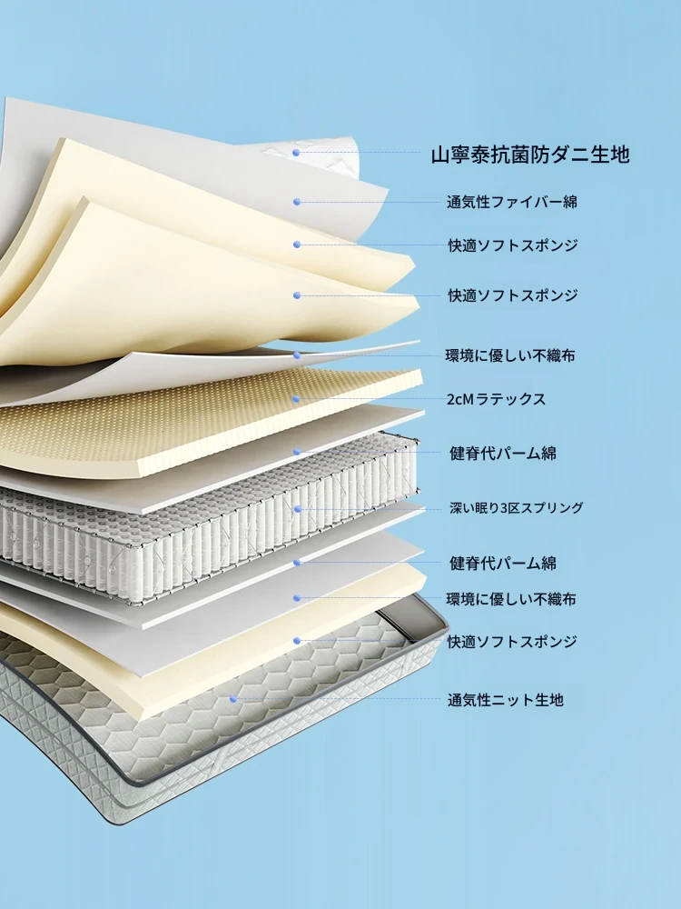 顾家のホーム・しっかりサポート!通気性抜群&取り外し可能な1.8m二人用天然ラテックスマットレスM1090