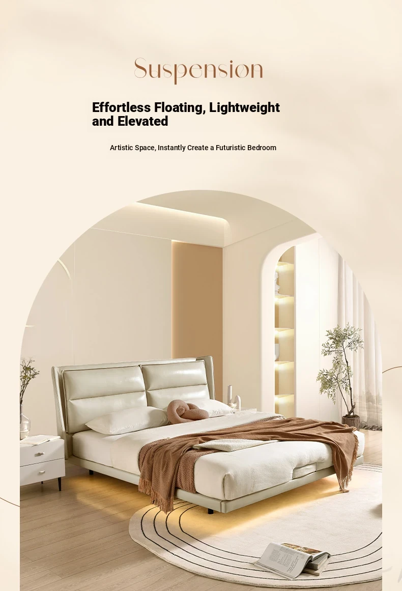CozyHome Official Modern Minimalist Genuine Leather Floating Bed - Undisturbed Sleep Design for Master Bedroom, 1.8m King Size Bed (Model 8100)