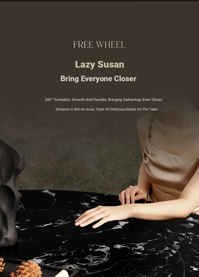 【黑玫瑰】59.06in圆桌+松鼠椅(皮布)*6+手动转盘