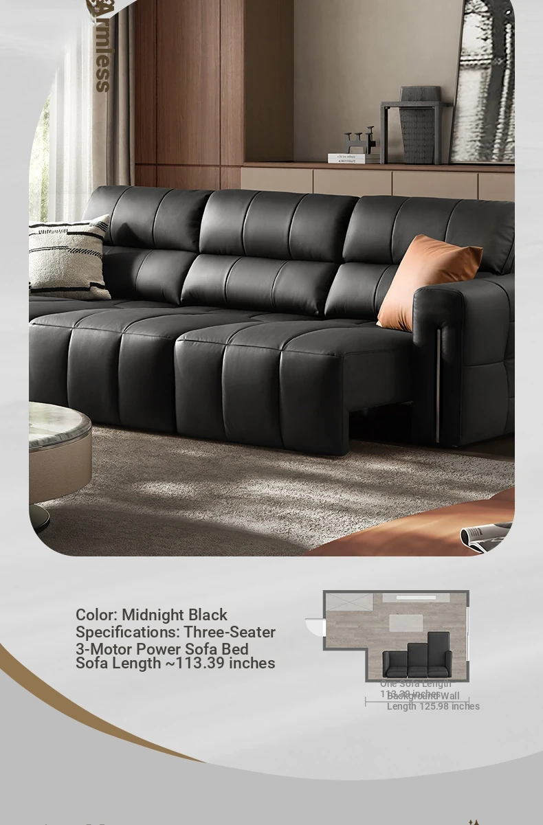 [Keys Black] Three-seat Three-electric sofa bed with overturned