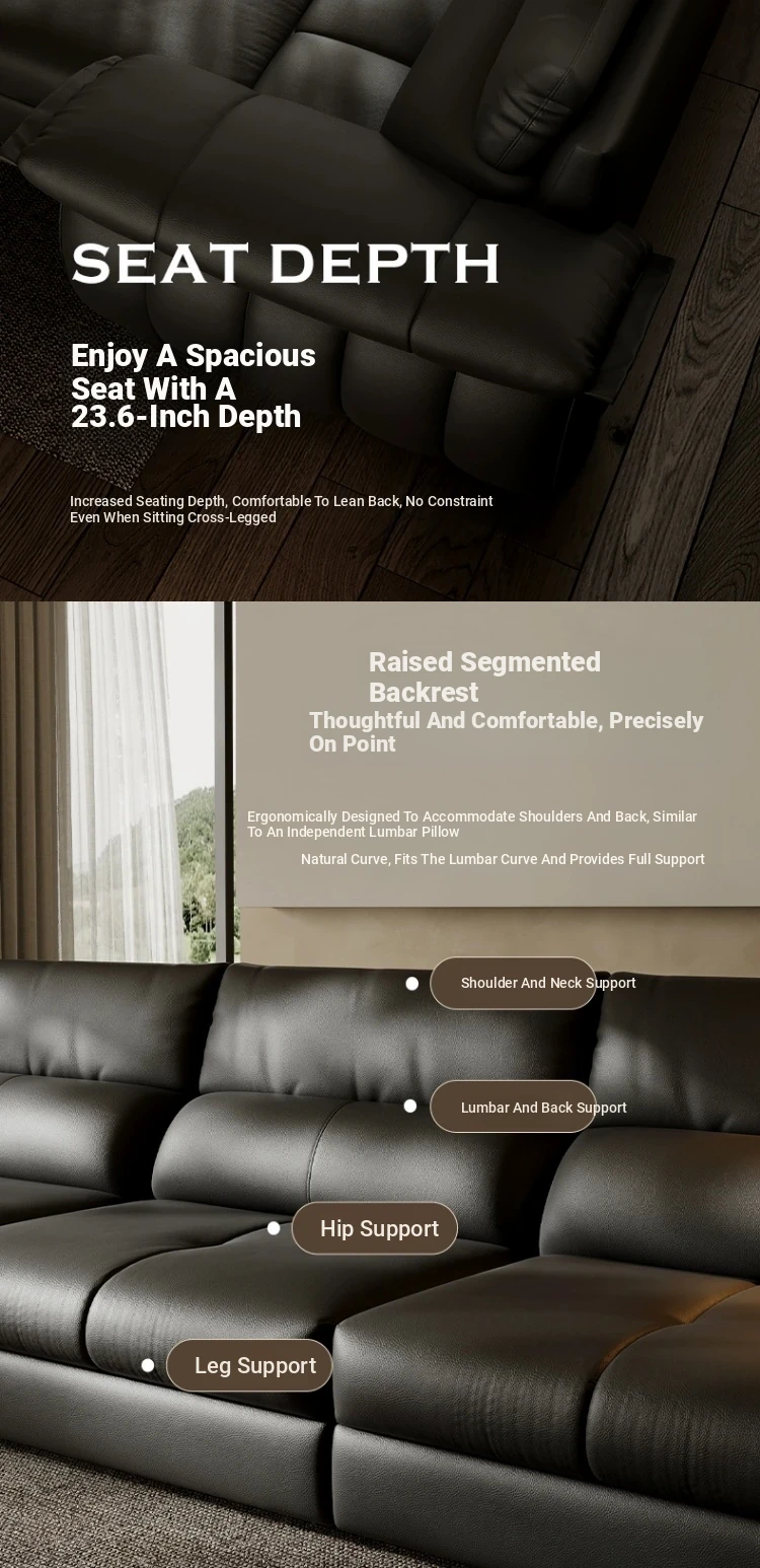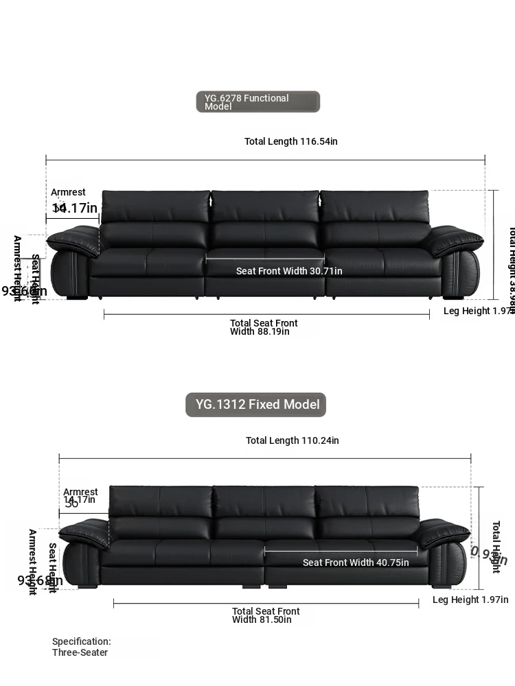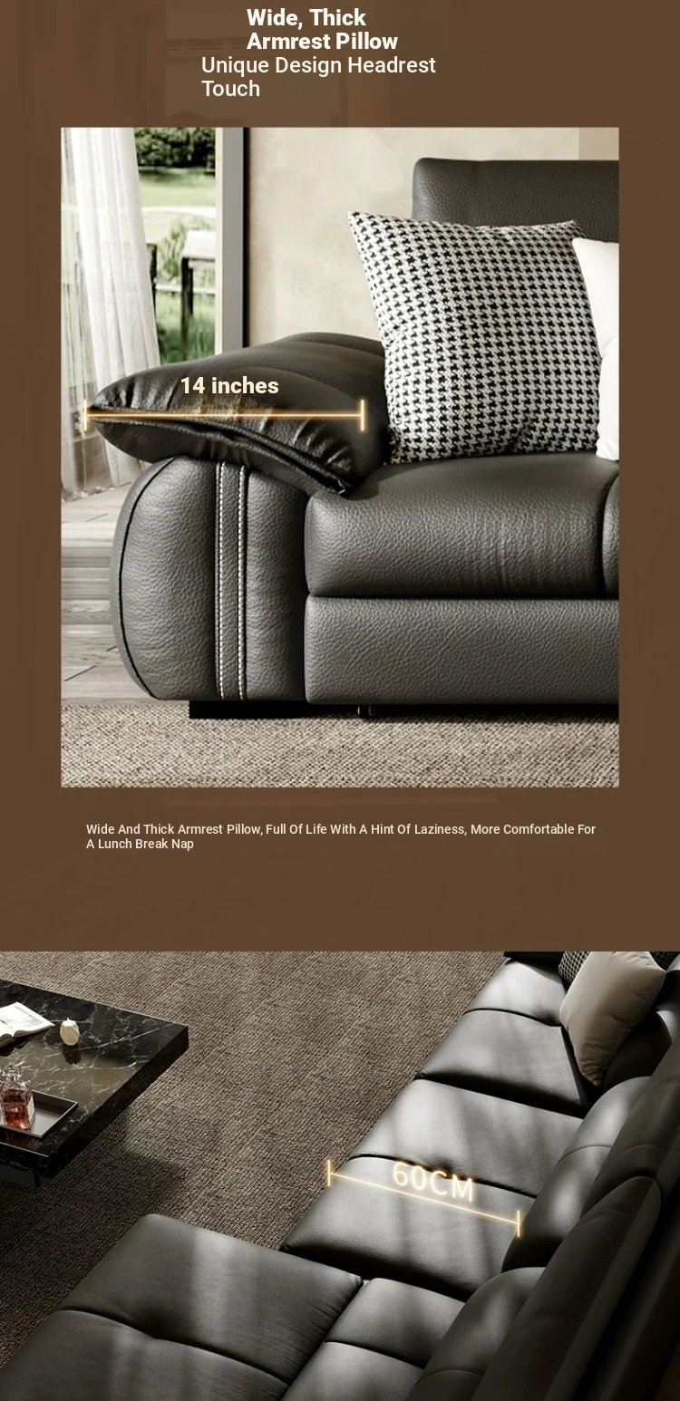 Gujia Home Italian Chic Top-Grain Leather Feather-Filled Multi-Functional Sofa Bed for Luxury Living Room - Model YG.6278