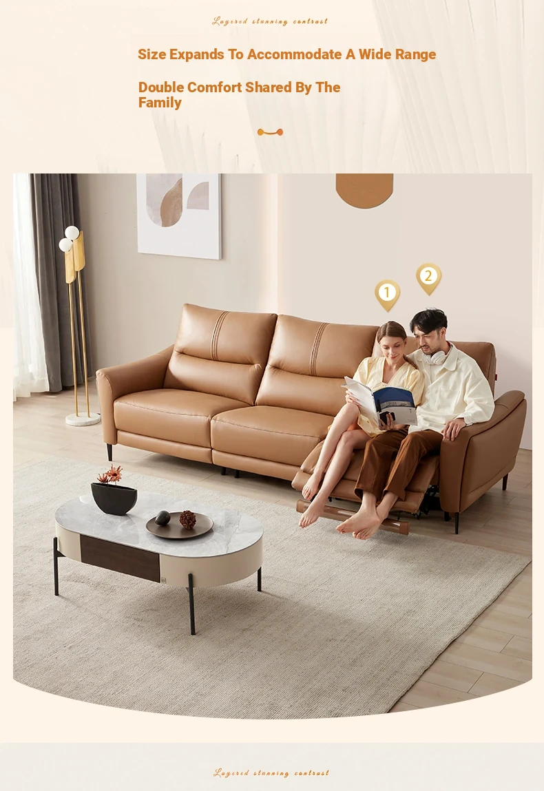 Gujia Home Italian Modern Luxury Electric Recliner Genuine Leather Sofa - Premium Top-Grain Leather European Style Furniture, Joyful Symphony 6068