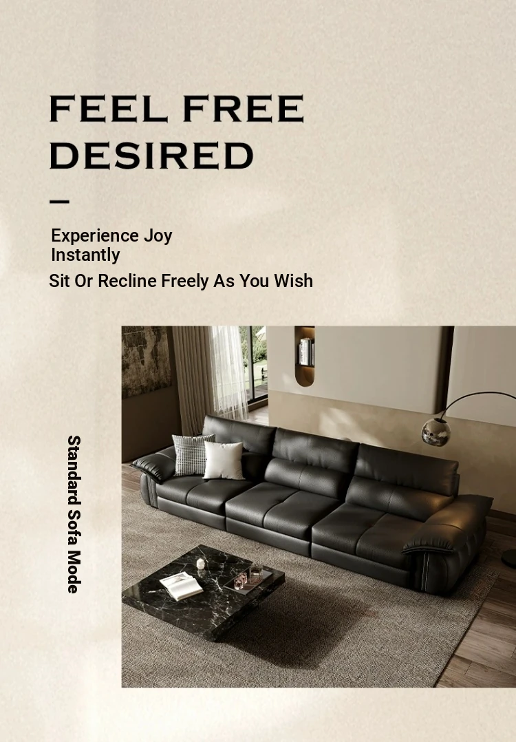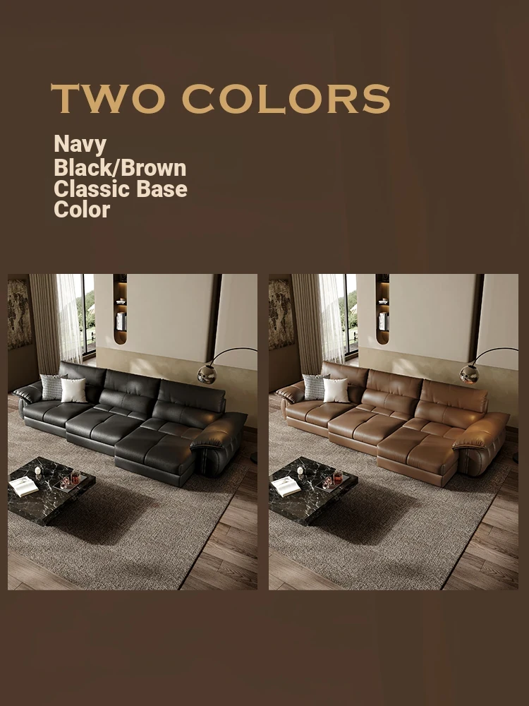 Gujia Home Italian Modern Luxury Top-Grain Leather Sofa Bed with Elephant Ear Armrests - Spacious Seating for Living Room (Model 1312)