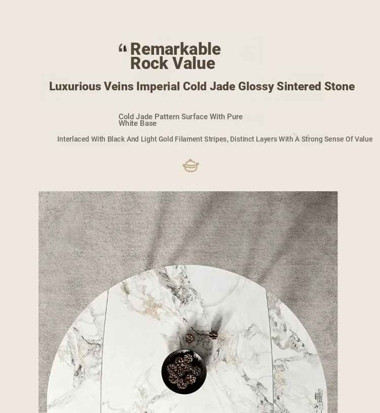 Gujia Home Modern Minimalist Extendable Dining Table PT7166T - Elegant High-Gloss Stone Finish, Perfect for Family Gatherings