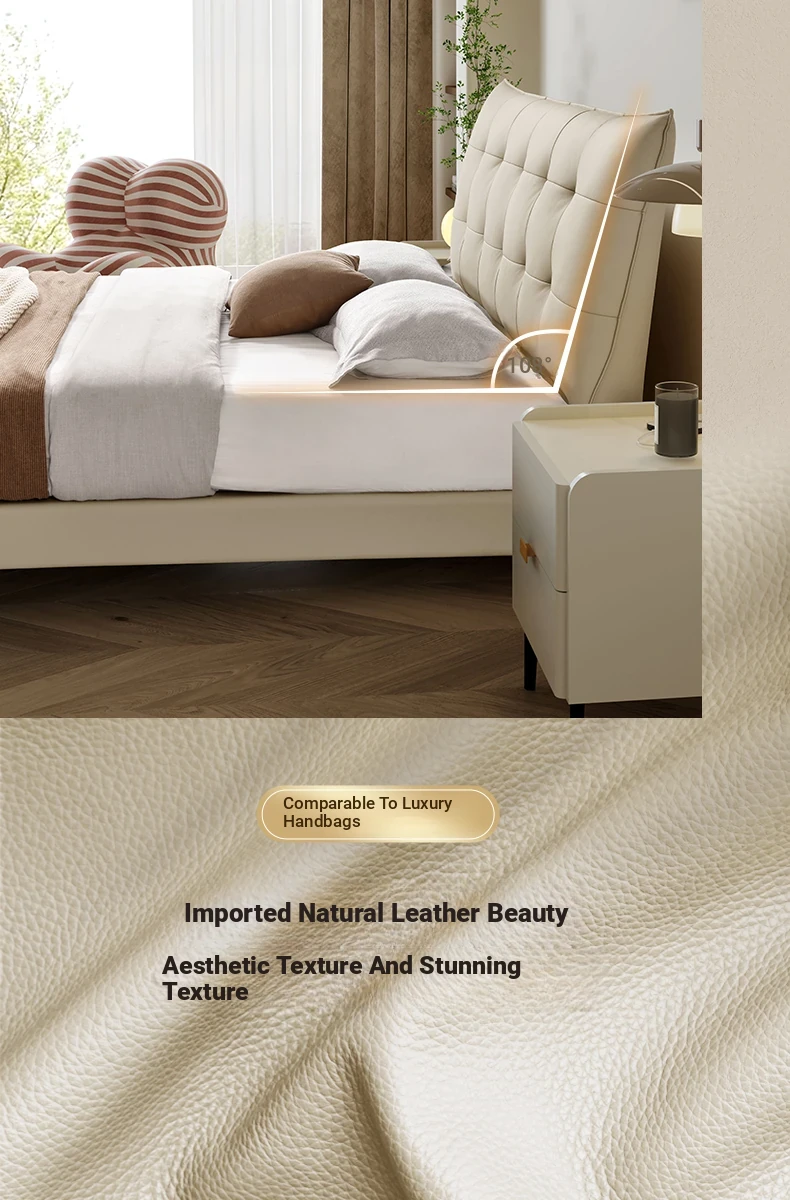 Gujia Home Modern Minimalist Faux Leather Bed - French Cream Style Genuine Leather Soft Bed for Master Bedroom, Double Bed Model 8121 - Official Store