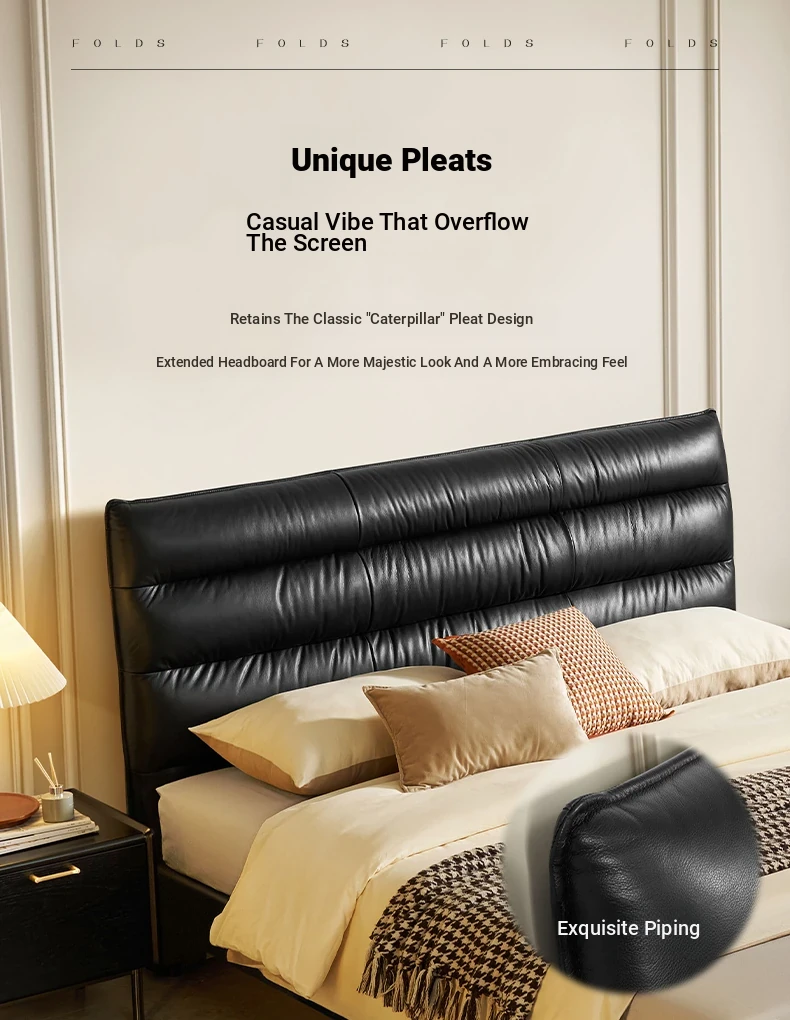 Gujia Home Modern Minimalist Genuine Leather Caterpillar Bed - Cozy Compact Single Bed for Guest Room (Model 8162)