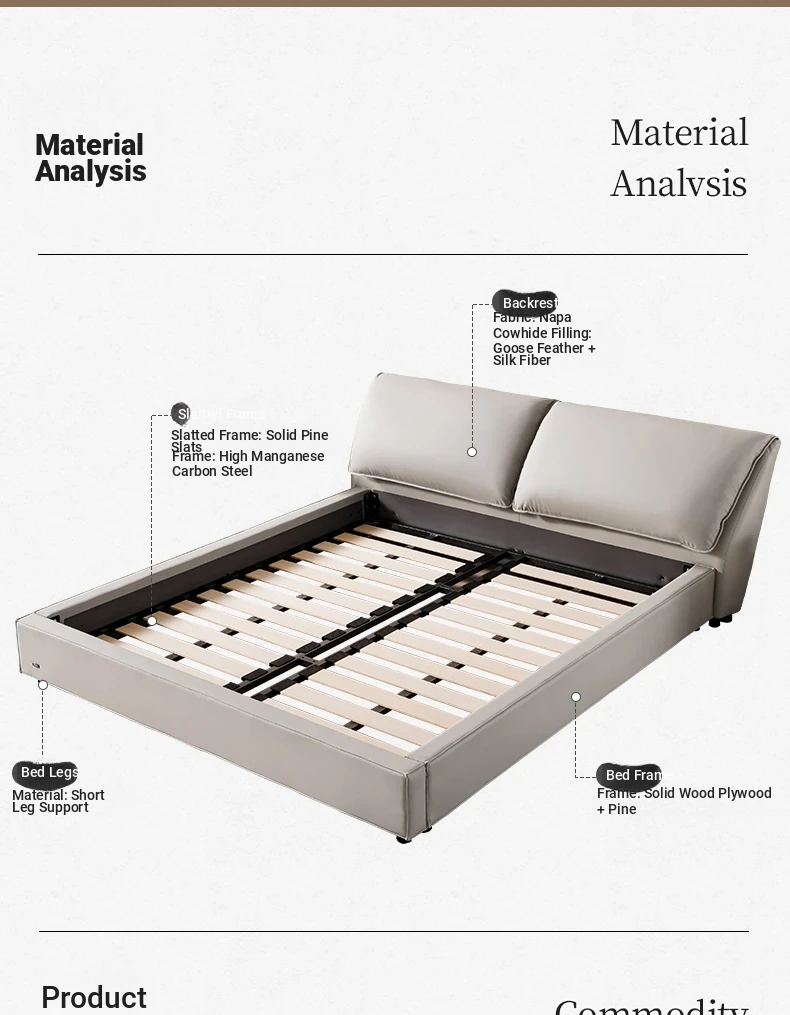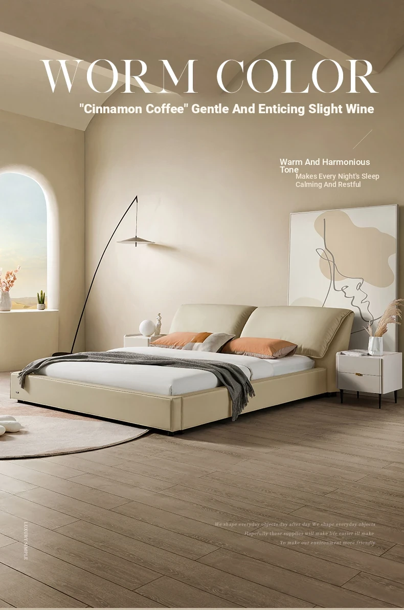 Gujia Home Simple Napa Leather Bed - Elegant Wooden Frame with Charming Elephant Ear Design, Perfect for Master Bedroom - Model 8037