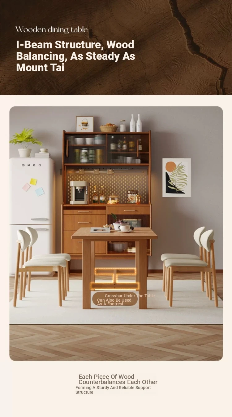 Gujia Home Solid Wood Dining Table - Scandinavian Style for Multiple People, Perfect for Home Dining Rooms - Model DS7163T
