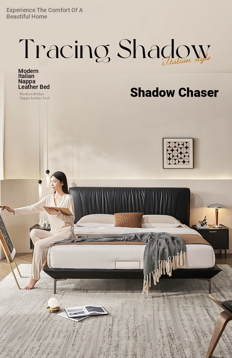 Luxurious Italian Modern Minimalist King Size Leather Bed - GUGA Home's Elegant Master Bedroom Centerpiece