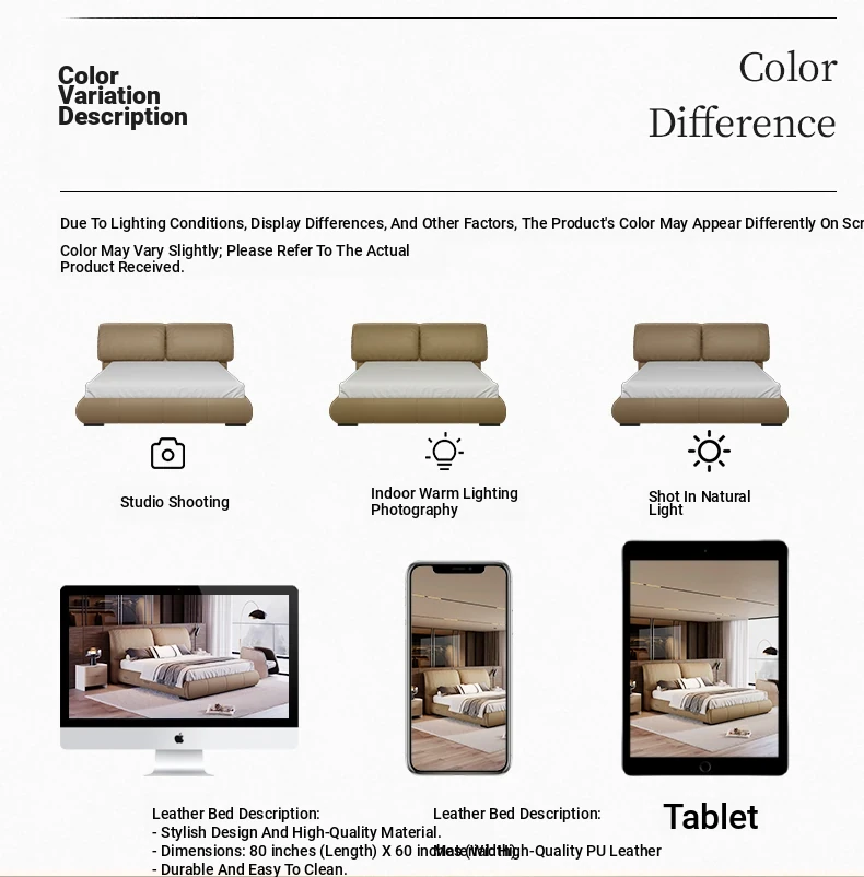 【Max Storage Collection】Gujia Luxury Modern Elephant Ear Top-Grain Leather Trim Double Bed 8211 - Chic & Spacious Design for Elegance and Comfort