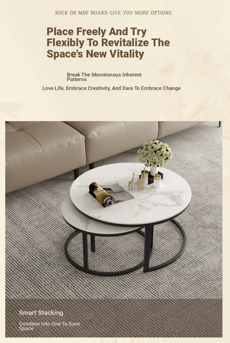Title: Guka Home Modern Minimalist Coffee Table with Detachable Sintered Stone, Adjustable and Rotatable for Living Room - Model PT7160TD