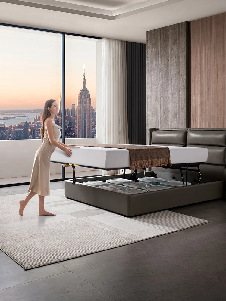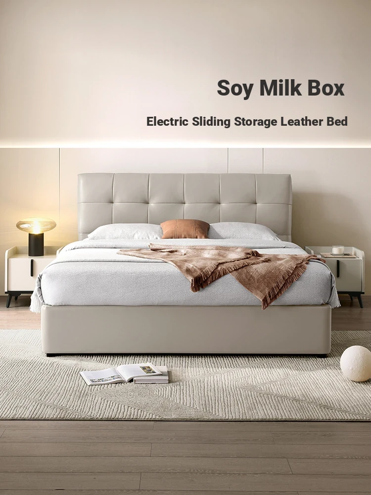 Contemporary Minimalist Electric Adjustable Storage Leather Bed - 1.8m Genuine Leather Double Bed for Master Bedroom by KUKA Home (Model 8068B) - Comfort Meets Style