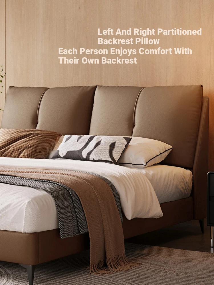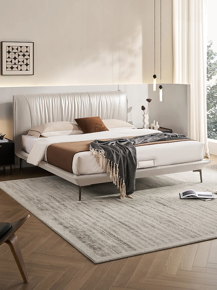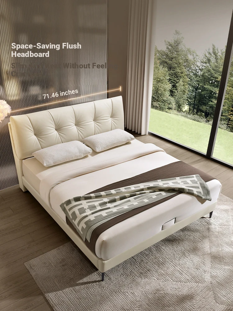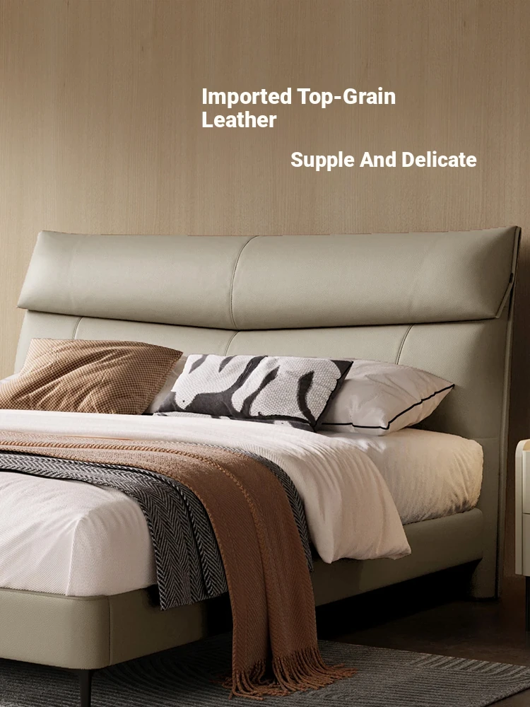 Gujia Home Modern Minimalist Genuine Leather Bed with Feather Padding - Noise-Free Design for Master Bedroom, Model DS8237B