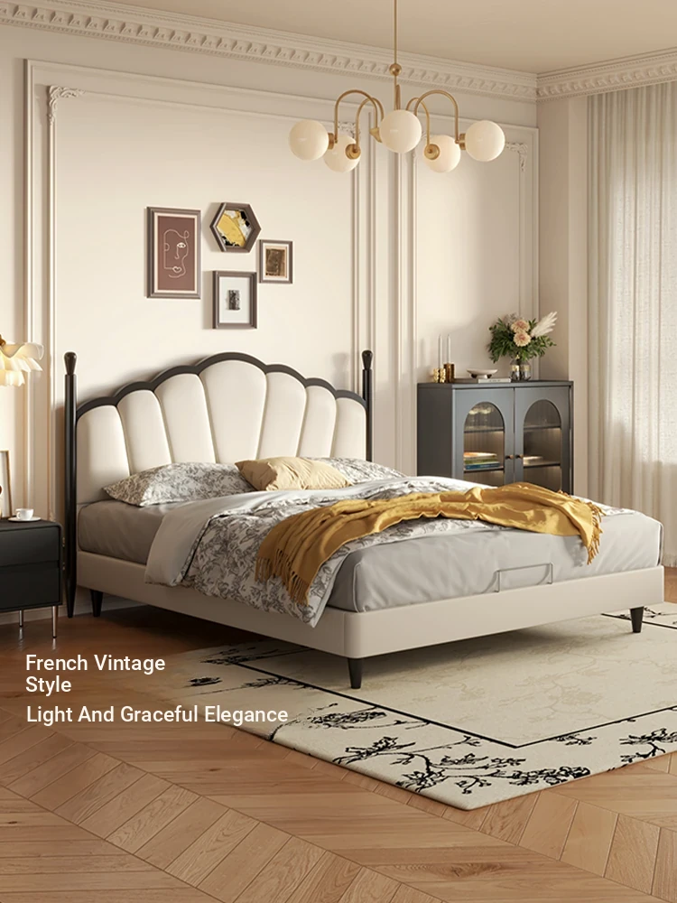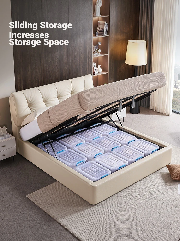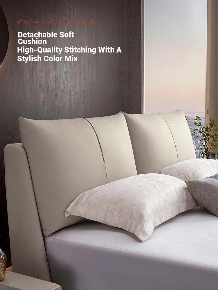 Gujia Home Modern Minimalist Luxury Leather Double Bed with Storage for Master Bedroom - Elegant Cream Design, Model DS2913