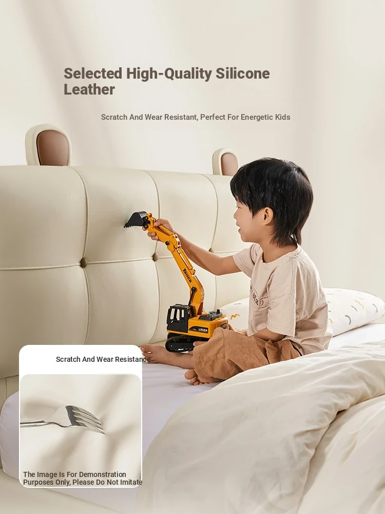 Title: CozyLiving Modern Minimalist Cream-Inspired Bed - Durable Silicone Leather Puff Bed for Kids, Upholstered Fabric Style (Model 9123)