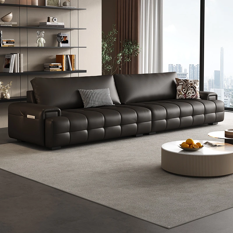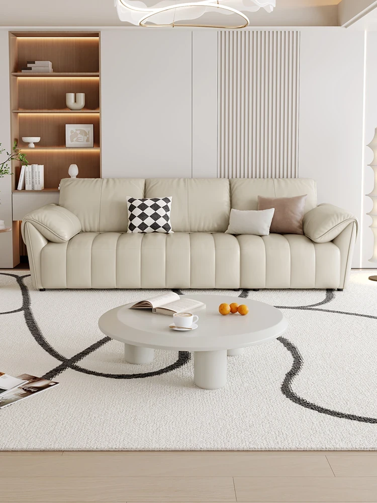 Gujia Home Modern Minimalist Cream Style Top-Grain Leather Living Room Furniture with Deep Seating - Model DK.1306