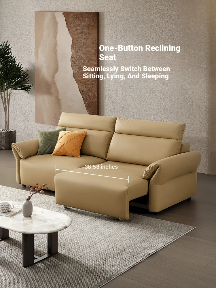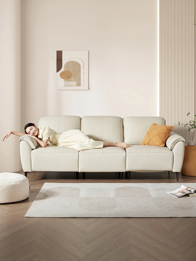 Gujia Home Italian Light Luxury Top-Grain Leather Reclining Sofa - Dual Color Options Available for Modern Living Room Elegance, Model DK.1226