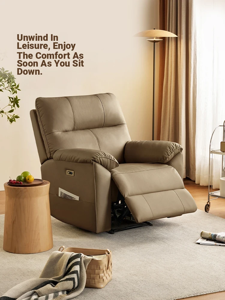 Gujia Home Premium Leather Electric Recliner with USB Charging and Independent Springs - Model A090