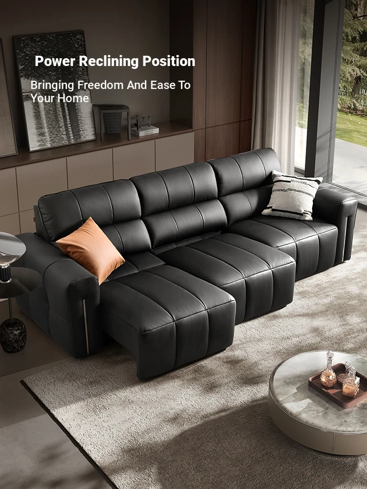 Gujia Home Italian Modern Luxury Napa Leather Electric Recliner Sofa for Living Room - Genuine Leather, Model 6085