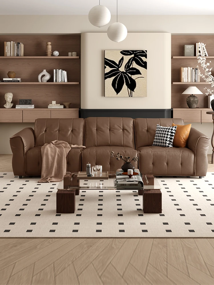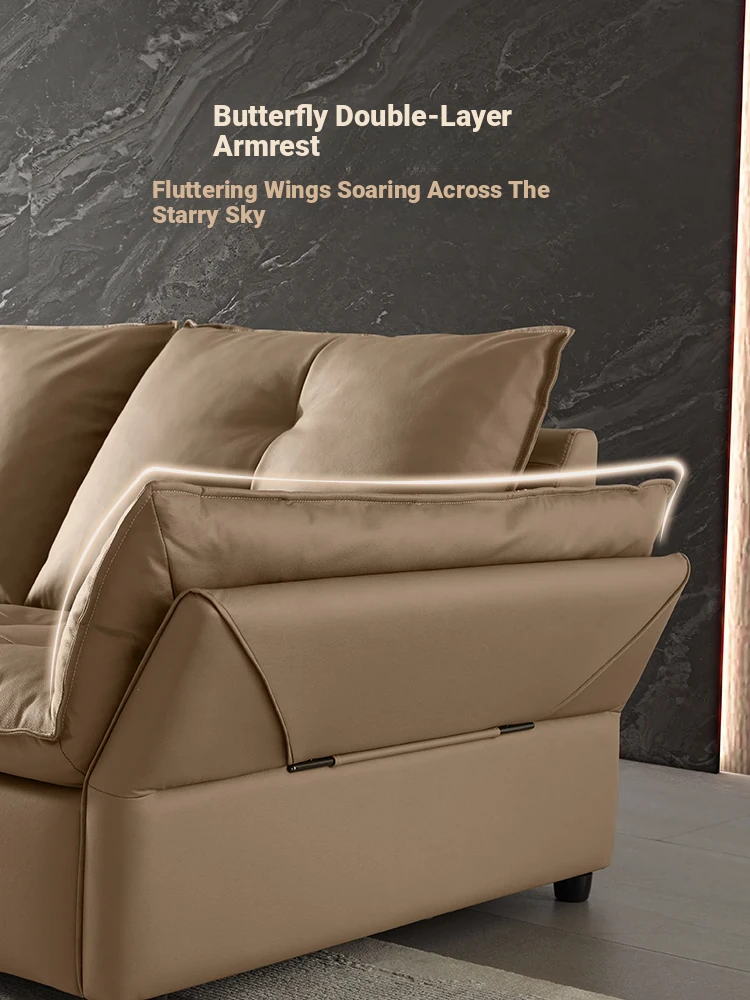 Gujia Home Italian Modern Luxury Top-Grain Leather Sofa Bed with Elephant Ear Armrests - Spacious Seating for Living Room (Model 1312)