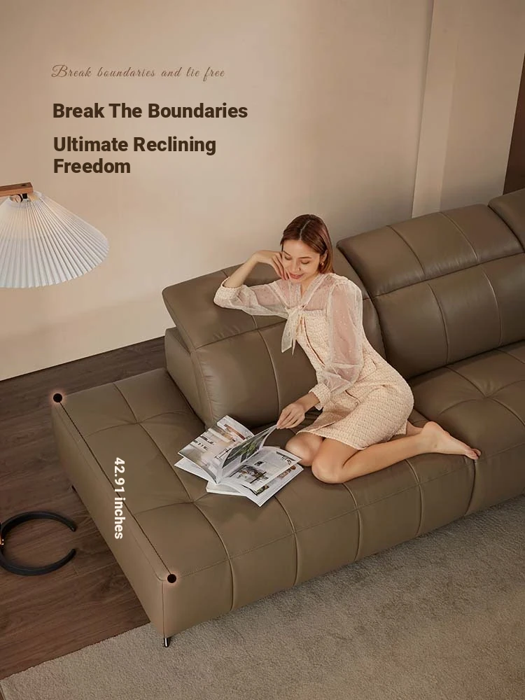 Elevate Your Living Room with the Gujia Italian Modern Luxe Full-Grain Leather Reclining Sofa - Comfortable Deep Seating DK.6230B