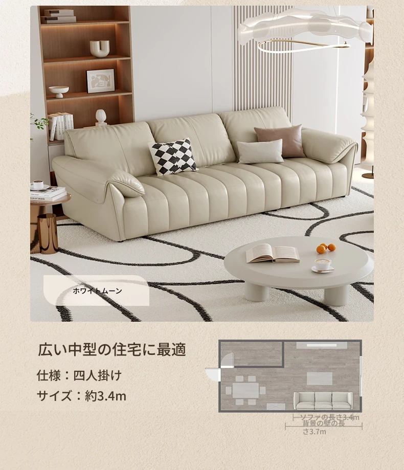 【Gukia 家具】现代简约のクリーム調本革ソファセット - 極上の座り心地!客室に優雅さをプラス