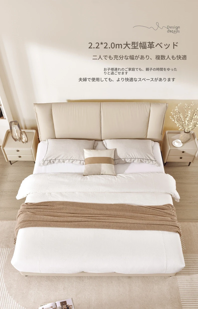 [Leather] milk apricot high foot [bed + independent cylinder mattress]]