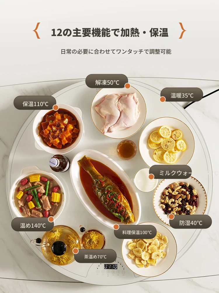 Gujia Home Multifunctional Insulated Heating Kitchen Dining Table with Tempered Glass Turntable - PT7152Q | Experience Coziness and Style at Every Meal