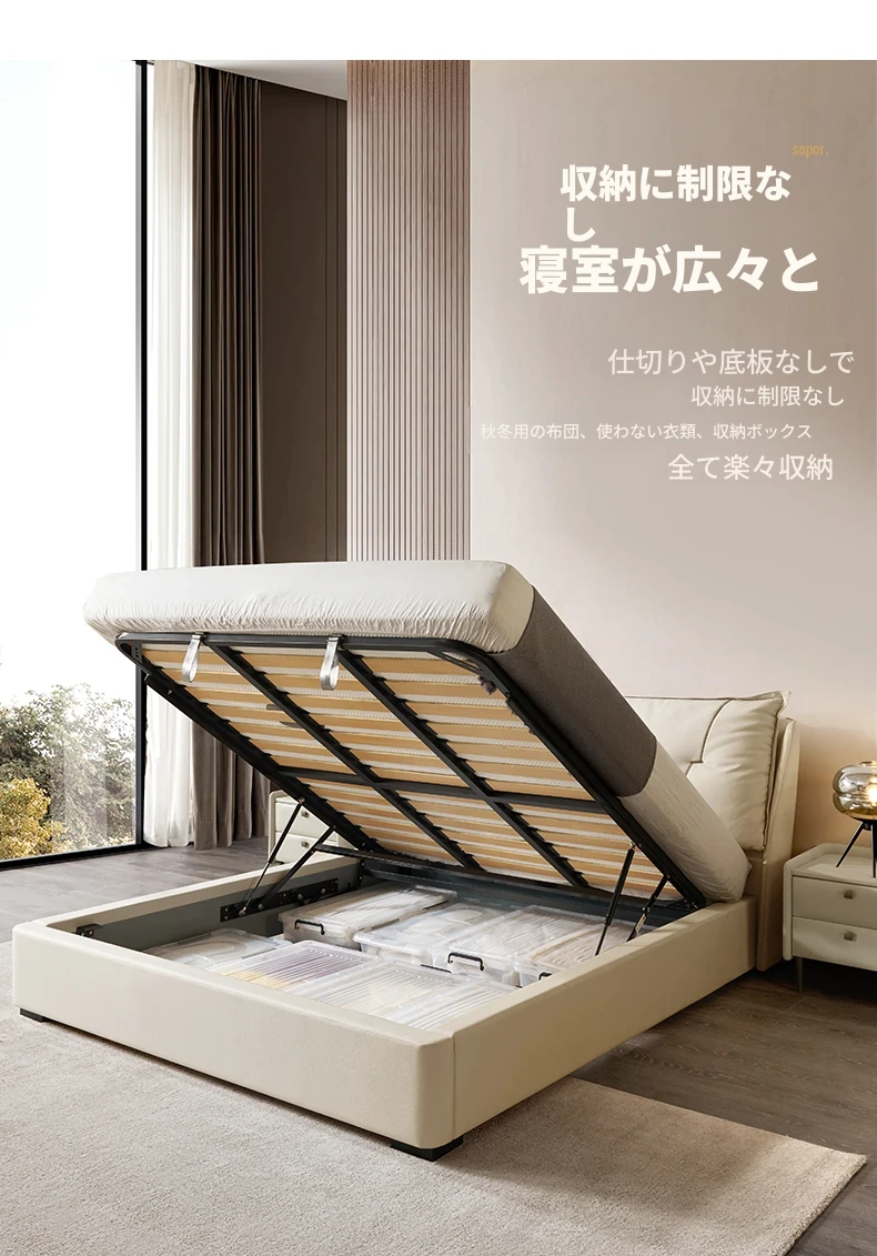 高雅で機能的なGu家高級収納レザーベッド-主寝室に最適な多機能ダブルベッド(8181)