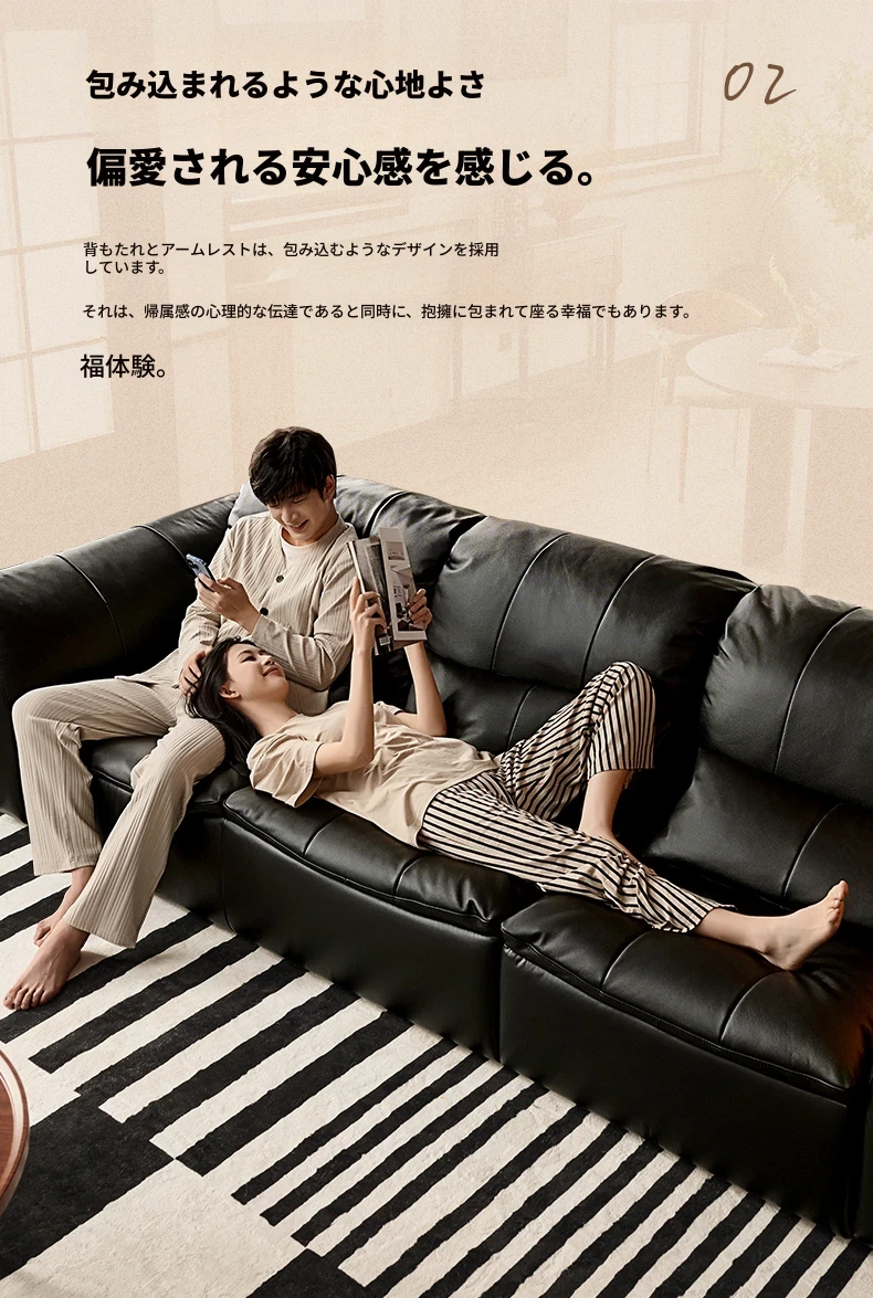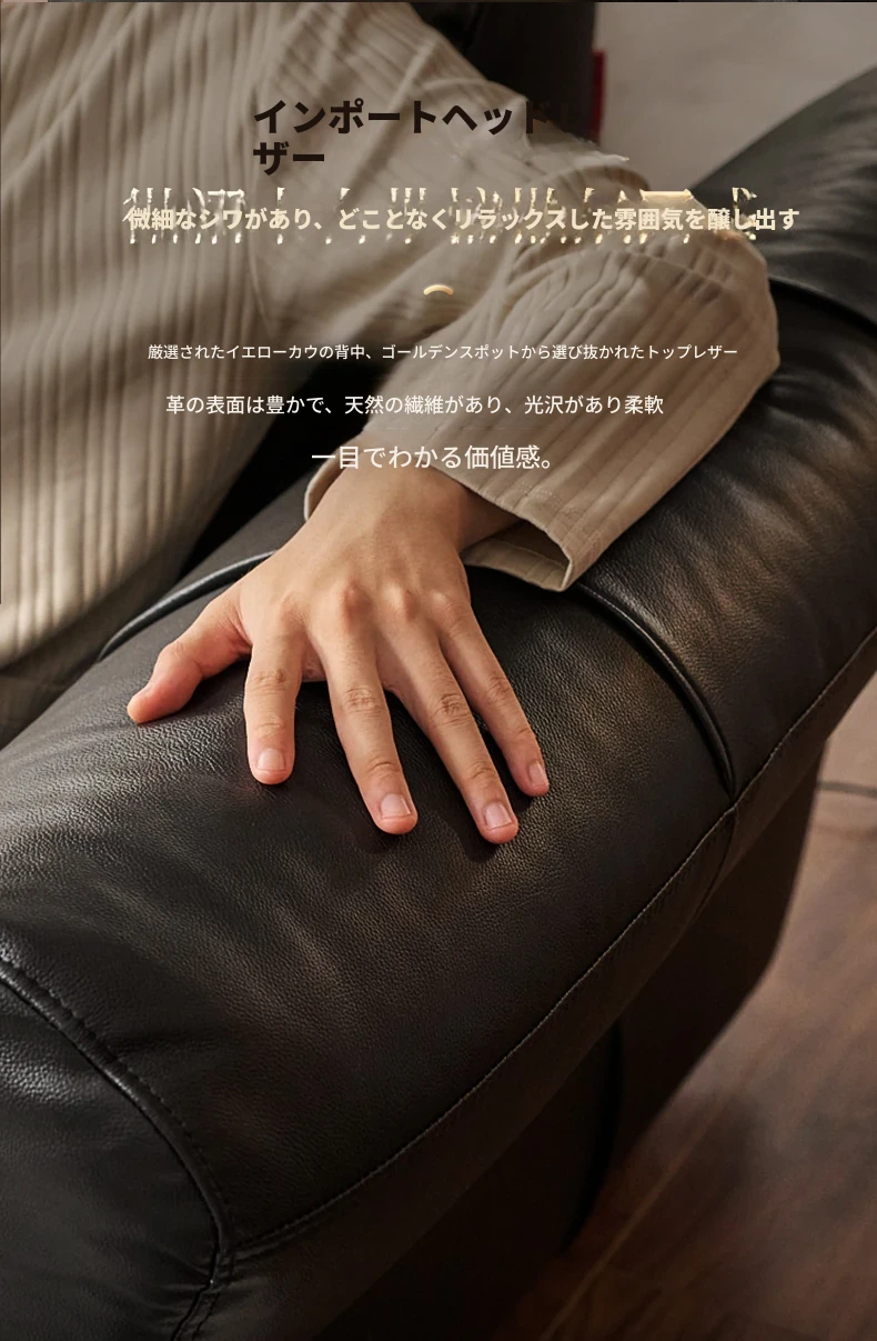 【优雅选择】Gujiaホーム イタリアンモダン 高級輸入本革調整可能アームレスト 羽毛詰めリビング用ソファ1258