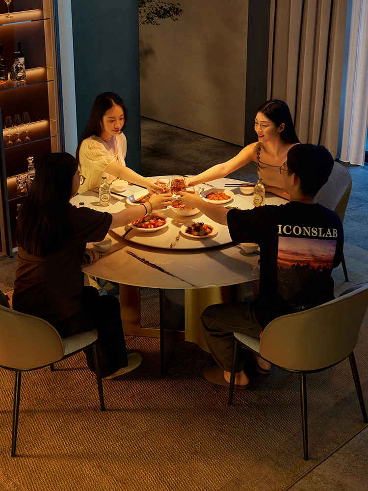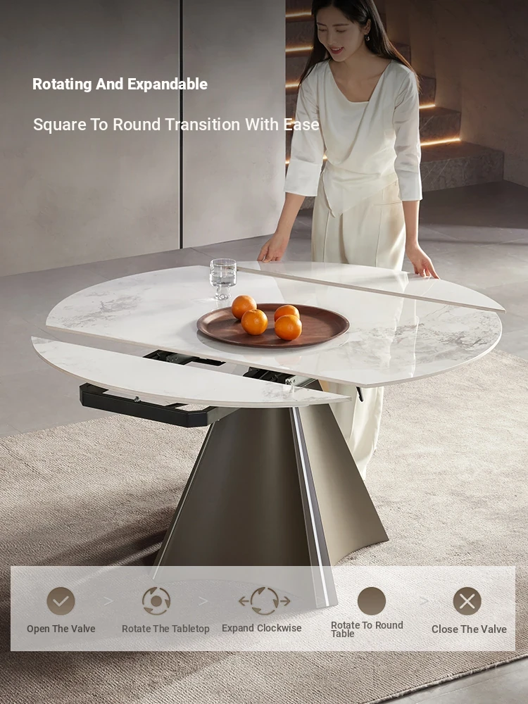 Modern Sleek Dining Table with Integrated Large Storage and Durable Sintered Stone Surface - Ideal for Family Gatherings by KUKA Home, Model PT7167KC