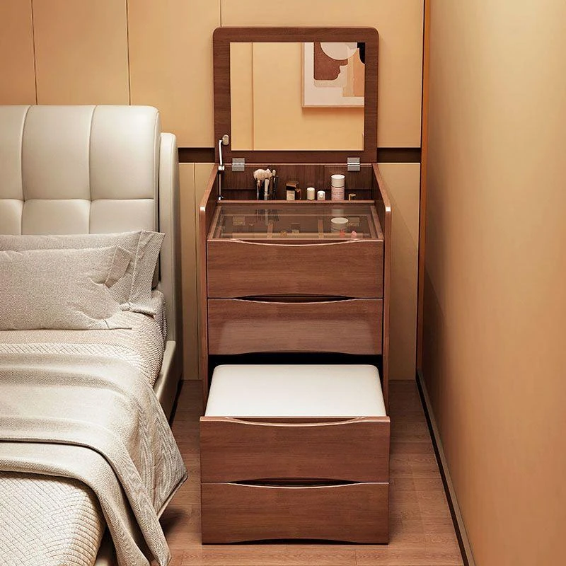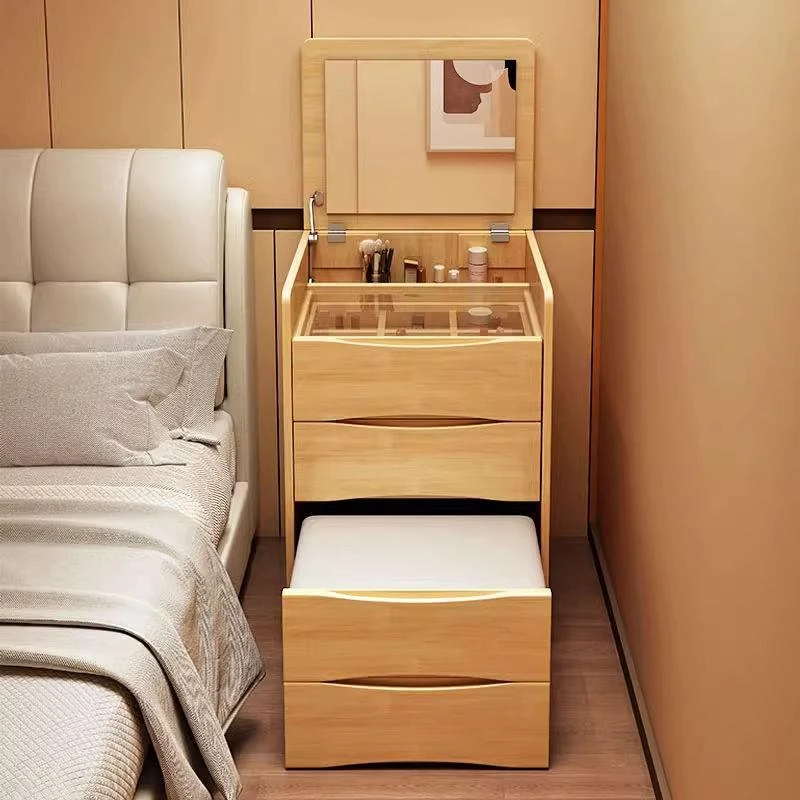 北欧スタイルの軽奢全実木化粧台&ナイトテーブル一体型!多機能デザインで狭い部屋にもぴったり。おしゃれで実用的な寝室の必需品!