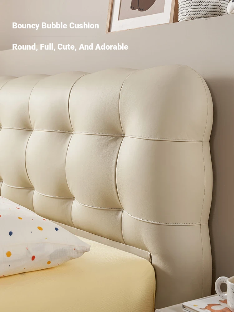 Cozy Cream Dream: Genuine Leather Bubble Bed - 1.35m Compact Size for Girls & Small Bedrooms (Model 8171)